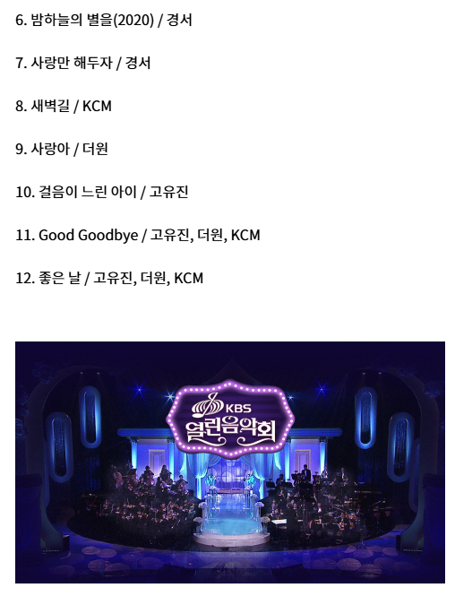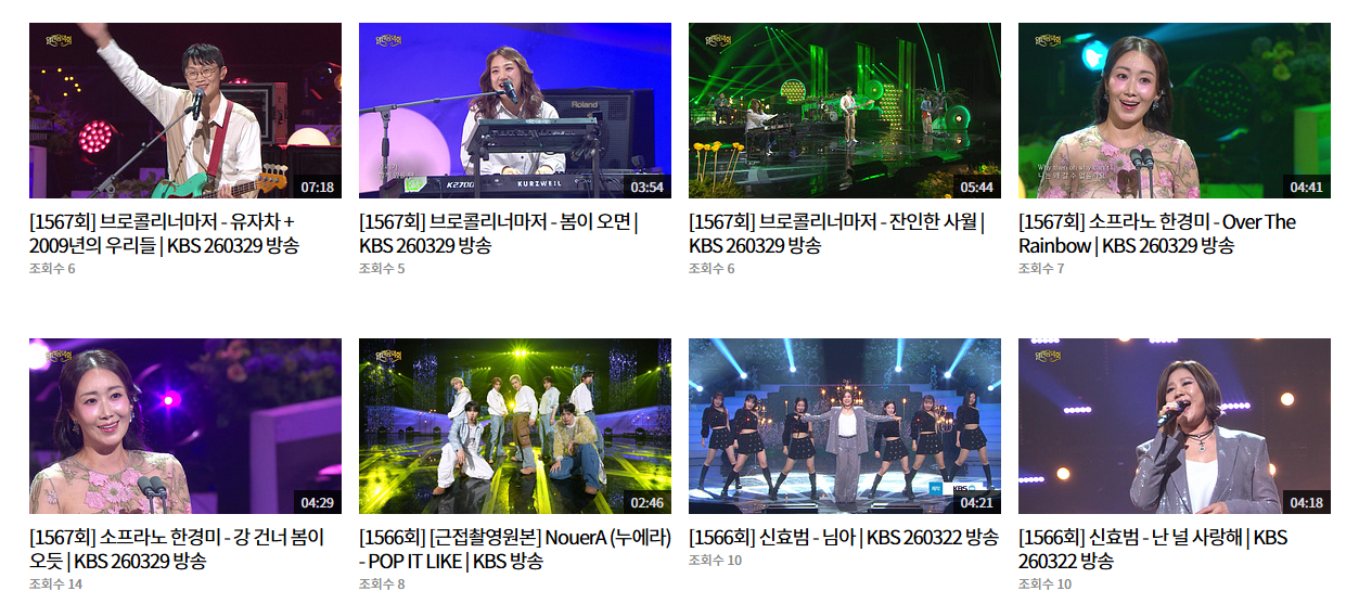 또한 열린음악회 다시보기는 유튜브 KBS 공식 채널에서도 일부 무대를 확인할 수 있습니다.